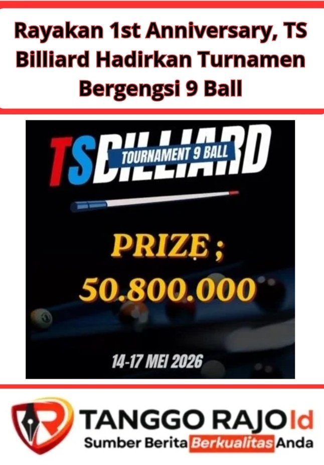TANJAB BARAT– Dalam rangka merayakan anniversary perdananya, TS Billiard secara resmi mengumumkan penyelenggaraan turnamen biliar prestisius bertajuk “TS Billiard Tournament 9 Ball”. Ajang ini akan digelar pada 14–17 Mei 2026 dengan total hadiah yang cukup besar, yakni mencapai Rp50.800.000.